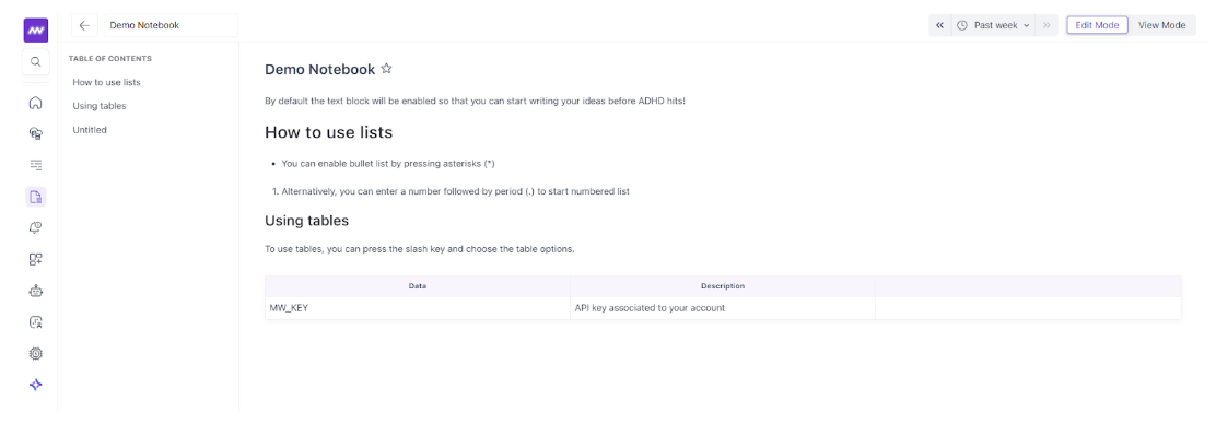 Use headings to structure your notebook and keep the Table of Contents clean.